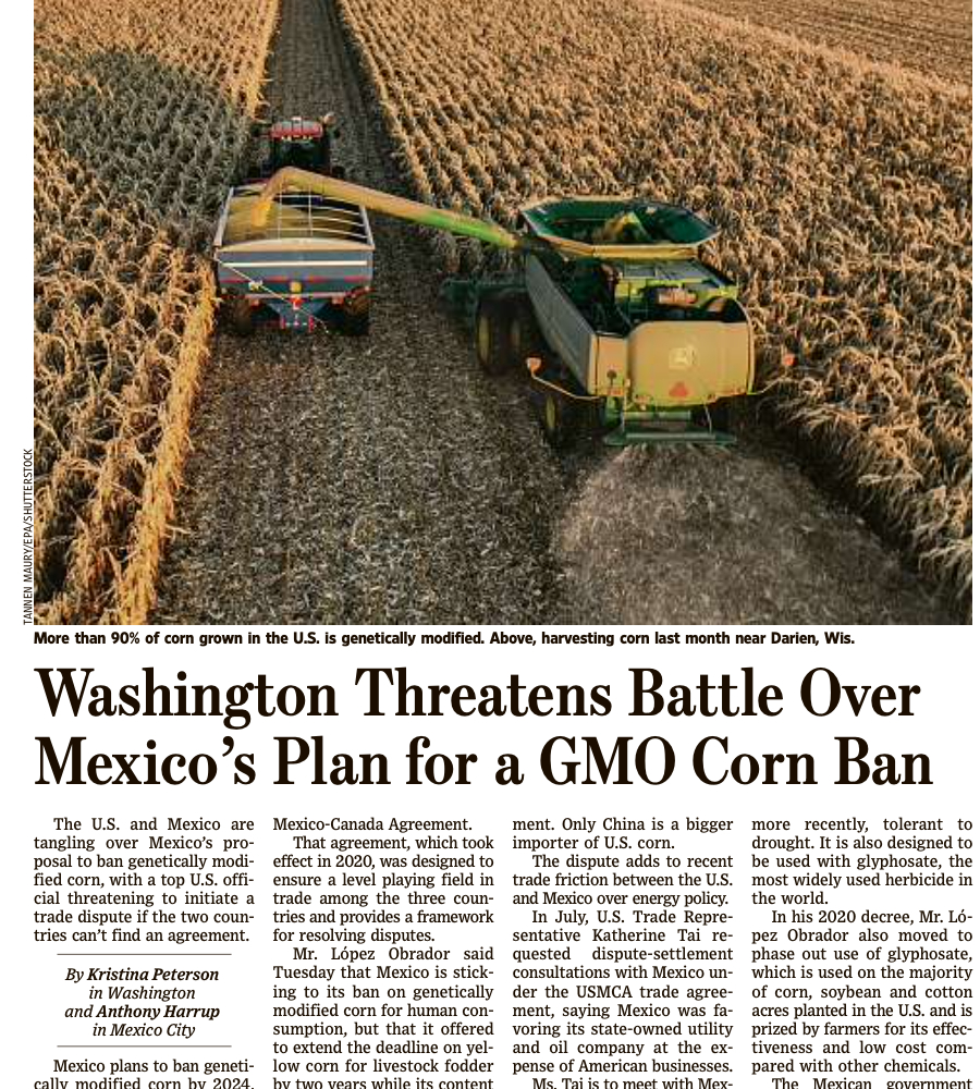 در دسامبر ۲۰۲۰، رئیسجمهور مکزیک آندرس مانوئل لوپز اوبرادور فرمانی را برای ممنوعیت ذرت دستکاری شده ژنتیکی تا سال ۲۰۲۴ امضا کرد که منجر به یک اختلاف تجاری عمومی با 🇺🇸 ایالات متحده شد. با این حال، بررسی دقیقتر سیاستهای محصولات تراریخته مکزیک و تاریخچه آن، شبکه پیچیدهای از فساد را آشکار میکند که انگیزههای واقعی پشت این ممنوعیت را زیر سوال میبرد.